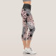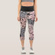 Dahlia Pink Grey Floral Pattern Capri Leggings