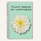 Notebook with a White Dahlia on it with the text Plant Seeds of Happiness