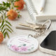 Un élégant porte-clés moderne floral de milieu d'été pour enterrement de vie de jeune fille avec un bouquet de dahlia aquarelle dans des tons de pourpre et de rose, avec des feuilles botaniques vertes luxuriantes et de l'eucalyptus. Veuillez trouver d'autres modèles et variations correspondants dans ma boutique "celebrationmoment".