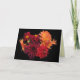 This thank you card features a dramatic pattern of dahlias in autumn colours of deep red, orange and gold on a black background arranged to create an almost abstract design. Inside, the text simply reads: Thank You. It can be customized to suit your needs. Two more little dahlias accompany the text.