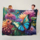Dahlias And Iridescent Blue Green Butterfly Fleece Blanket
