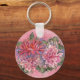 Dahlias flowers pink watercolor pattern keychain