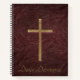 This Daily Devotionals Journal has a simulated brown leather background with a golden cross and the words "Daily Devotionals" in elegant understated gold script. Back cover features the same brown simulated leather design. The example shown has a black spiral binding. This book is available in many different sizes, with your choice of spiral colour and what type of pages you want inside (lined, blank, etc.)