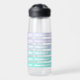 Another bold drink bottle by JessicaAmber! This clear water bottle features white groovy serif text with labels for six times of the day from 7am to 5pm. Each line is on a rectangular bar in a gradient from pastel purple to green. Each line has a sassy and fun catchphrase, to motivate you when you take a drink break. Customise the text with phrases that inspire you, and change the times to suit your work or school schedule. A simple but effective way to remind you to sip more water to stay hydrated and healthy! Great gift for you and the gym sisters. Created 12 August 2022. ❤ For more athletic gear, check out my store Zazzle.com/JessicaAmberArtist ❤ For custom orders, email me at jessicaamberartist+zazzle(at)gmail.com