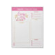 Personalized Daily Planner in pink red and yellow with sections for your schedule, notes, goals and reminders. It is lettered with a motivational quote .. "Every day is a New Start". This tear away notepad is printed on each page to last you for 40 days.