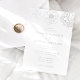 Elegant floral wedding invitations featuring a top border of dainty silver foil flowers with a white background. Personalize the foil floral wedding invitations with your names and wedding details in silver foil lettering with calligraphy script accents. Designed to coordinate with our Dainty Floral wedding collection.