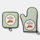 Dairy Farm Brown and White Cow standing in grass Oven Mitt & Pot Holder Set