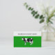 Dairy farm business cards with simple two side design that includes an image of a dairy cow, green black and white colour scheme with green background colour you can customize and text you can easily personalize. Designed for a dairy farmer, retail farmers market, or farm.