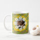 Your cat in a picture on a green and yellow mug full of fun cat ears.