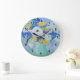 This wall clock features a painting by Brendan Loughlin, an artist from Guilford, Connecticut. Beautiful yellow and white daisies with blue irises.