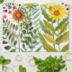 Watercolor painting of daisies and sunflowers. Happy and colourful pattern in 1970 style to enlighten your day!