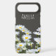 Modern stylish, personalized phone case with sunny daisies on dark grey background.