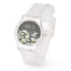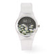 Modern, stylish personalised watch with sunny daisies on dark grey background.