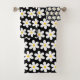 Daisies Retro Floral Pattern White Black Bath Towel Set