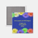 Top and bottom daisy border in bright colours, bright blue background with yellow editable text message in the centre.