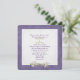Purple damask frame with daisy and pearl bouquet for wedding invitation.