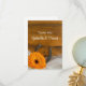 Write a warm message of gratefulness and appreciation for gifts received after a casual and classy engagement barn party, bridal shower or marriage ceremony and reception with the country chic Orange Daisy and Horseshoe Country Western Wedding Flat Thank You Note. These informal yet elegant custom ranch theme thank you notes feature a quaint floral photograph of an orange gerber daisy flower blossom, rusty horseshoe and a white bridal veil and a rustic weathered brown barn wood background.