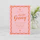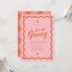 Ces invitations à la fête d'anniversaire sont assorties d'une couleur orange audacieuse et d'un rose clair, créant une esthétique dynamique et ludique. La bordure de vague rétro ajoute une touche de nostalgie et ajoute un élément amusant et unique au design. Les invitations sont disponibles en plusieurs couleurs, ce qui vous donne la flexibilité de créer un look cohésif pour votre journée spéciale.