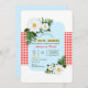 A summer-theme invitation shown as an engagement party bbq but well-suited for any summer celebration. The white background has a wide, gingham, ribbon-centre and corner clusters of white daisies. (<a href='http://www.freepik.com/free-vector/pretty-bachelorette-invitation-with-realistic-daisies_1086421.htm'>Designed by Freepik</a>). <br/><br/>The card is easy to customize with your wording, font, font colour, paper shape options and choice of six paper types.<br/><br/>Not exactly what you're looking for? All our products can be custom designed to meet your needs at no extra charge.<br/><br/>Simply contact us at heartfelthelper@gmail.com<br/><br/>Coordinating products available: Just ask us!