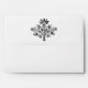 Elegant envelopes with script text for your return address labels on the front, and an elegant vintage floral etching medallion on the back flap, lined with a pattern of damask daisies inside.