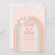 Retro inspired Five is a Vibe 5th birthday invitation with hippie style pastel rainbow, and daisies