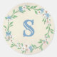 Monogram inside soft blue and pink floral bouquet with white daisy in wreath design.