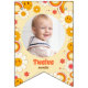 Daisy Flower Birthday Monthly Photo Bunting Flags is a part of the Daisy Flower Birthday Party collection. This product features flower emoji, daisy flowers, colourful circles. Done mostly in white & orange colours with decorative fonts. Explore more matching products in our store.