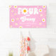This is a Pink Retro Daisy Flower Four Ever Groovy 4th Birthday Party Banner.
