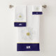 Daisy Flower & monogram on navy blue & white bath Towel Set