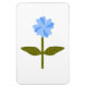 This awesome magnet features a digital image of a daisy with a green stem with two green leaves on it and light and dark blue coloured petals. This is a simple, yet beautiful design. The background is white.