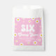 This is a Pink Retro Daisy Flower Six Groovy Years 6th Birthday Party Favour Bags.