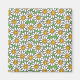A cute hippie style pattern of white and yellow daisy flowers with faces on a green background.
