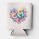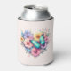 A can cooler with a beautiful illustration. A heart-shaped bouquet of flowers in pastel blue, green, purple and yellow. With a lovely blue butterfly hovering in front.