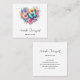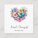 Business cards with a beautiful illustration. A heart-shaped bouquet of flowers in pastel blue, green, purple and yellow. With a lovely blue butterfly hovering in front.