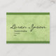 A business/ Profile card made with an original background in shades of green with texture and daisies faintly etched into the background. Ready to be customized.