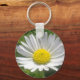 Keychain / keyring with photo of bright and cheery white daisy flower with yellow centre