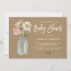 Mason jar theme baby shower invitation. Invite family and friends with this rustic floral baby shower invitation. It features white daisies, pink rose and baby's breath in a mason jar with faux kraft paper background. Personalize by adding names, date, time, venue and other details. This floral invitation is perfect for fall baby showers.