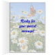 A beautiful daisy meadow image with the added beauty of a Peacock butterfly, ready for your special message. Suitable for so many occasions!