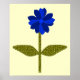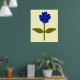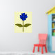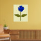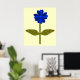This pretty print features a digital image of a daisy with a green stem with two green leaves on it and light and dark blue coloured petals with a light blue centre. The background is sunshine yellow with a beautiful blue border. The design is available in several different print sizes, the largest of which is shown here.