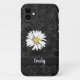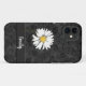 Ajoutez votre propre nom à la plaque signalétique biseautée sur damas noir avec marguerite blanche.