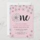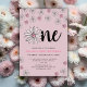Modern floral daisy pink first birthday invitation for girls 1st birthday party.