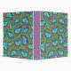 A binder with a green and purple paisley design. The paisley has daisies in the middle against a light blue background.