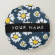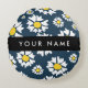 Daisy Pattern, White Daisies, Your Name Round Pillow