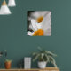 Poster shown with a upclose photo print of a pretty daisy flower with a water droplet. Customize this item or buy as is. Stock Image
