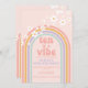 Retro inspired Ten is a Vibe 10th birthday invitation with hippie style pastel rainbow, and daisies