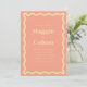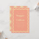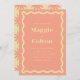 These wedding invitations feature a peach colour paired with a light yellow, creating a vibrant and playful aesthetic. The retro wave border adds a touch of nostalgia and adds a fun and unique element to the design. The invitations come in multiple colour options, giving you the flexibility to create a cohesive look for your special day. The coordinating stationery is designed to mix and match, allowing you to create a custom and coordinated look for your wedding.