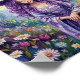 This fantasy poster features a serene purple-haired witch in an enchanted forest, wearing a wide-brimmed hat and flowing gown among daisies - dreamy, mystical fantasy art illustration. Finished in a oil acrylic impasto painterly style.