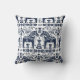 Dala Horse, Navy Blue & White Folk Print Throw Pillow