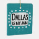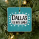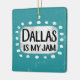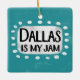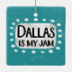 "Dallas Is My Jam" est un design de texte amusant avec une forme d'accent blanc entourée de points blancs texturés.