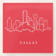 This design features a hand drawn sketch of the Dallas skyline on burgundy.
